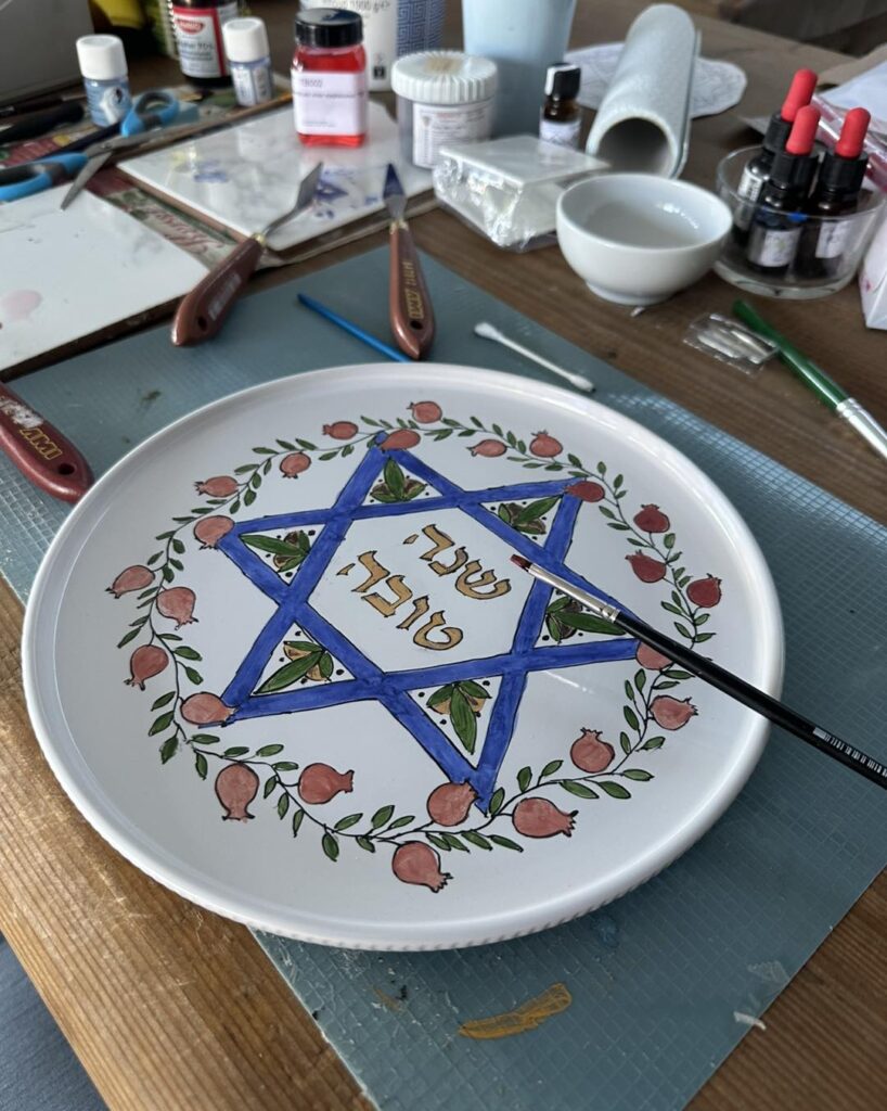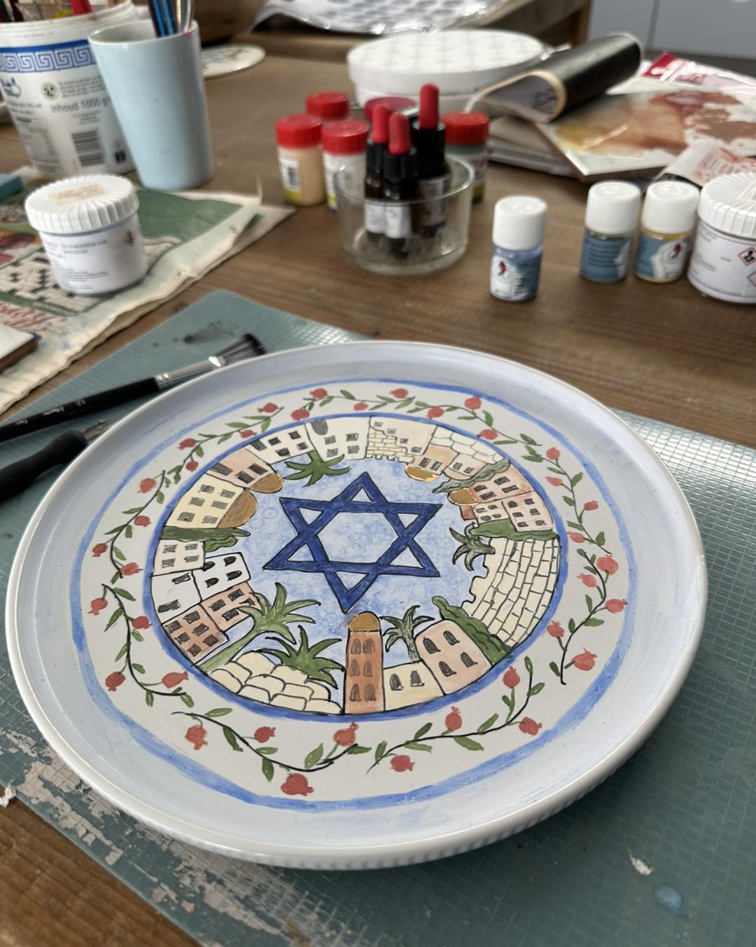 In mijn atelier ontstaan Judaica borden, schalen en trays die met de hand worden beschilderd. Elk stuk begint als een leeg wit bord en groeit laag voor laag uit tot een object met betekenis. Borden voor Shabbat, schalen voor feestdagen en bijzondere momenten. Geen massaproductie, geen herhaling, maar aandacht, symboliek en ambacht in elk detail. In dit blog neem ik je mee in het maakproces, zodat je ziet wat er allemaal schuilgaat achter één enkel bord.