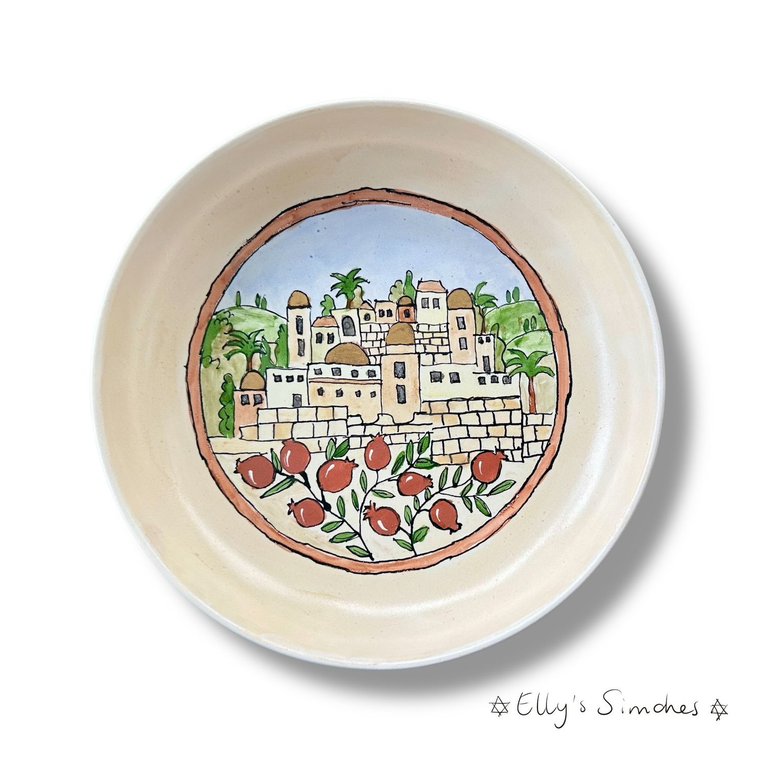 Schaal Jeruzalem met granaatappels – Handgeschilderd